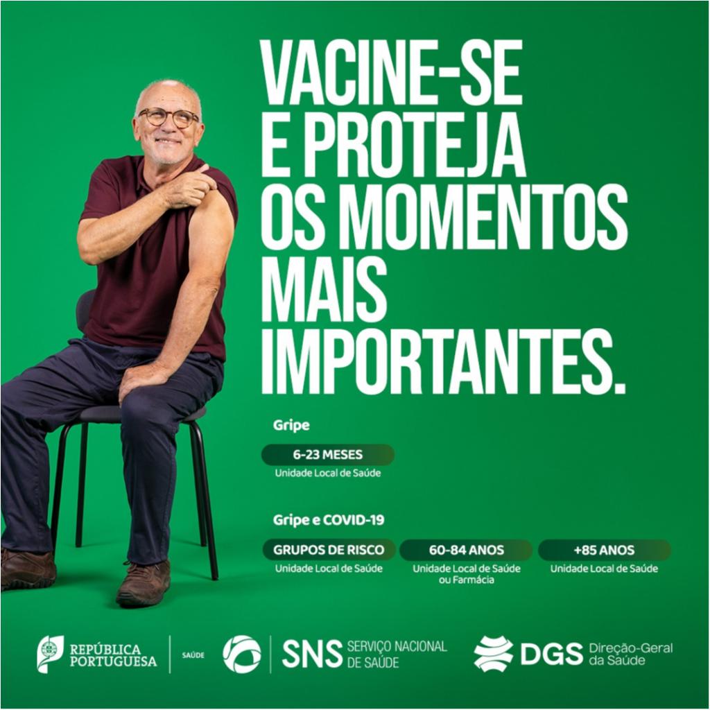 A Junta de Freguesia divulga, a pedido dos Serviços Partilhados do Ministério da Saúde (SPMS), a campanha nacional de vacinação sazonal contra a Gripe e a COVID-19, dirigida aos grupos considerados elegíveis.